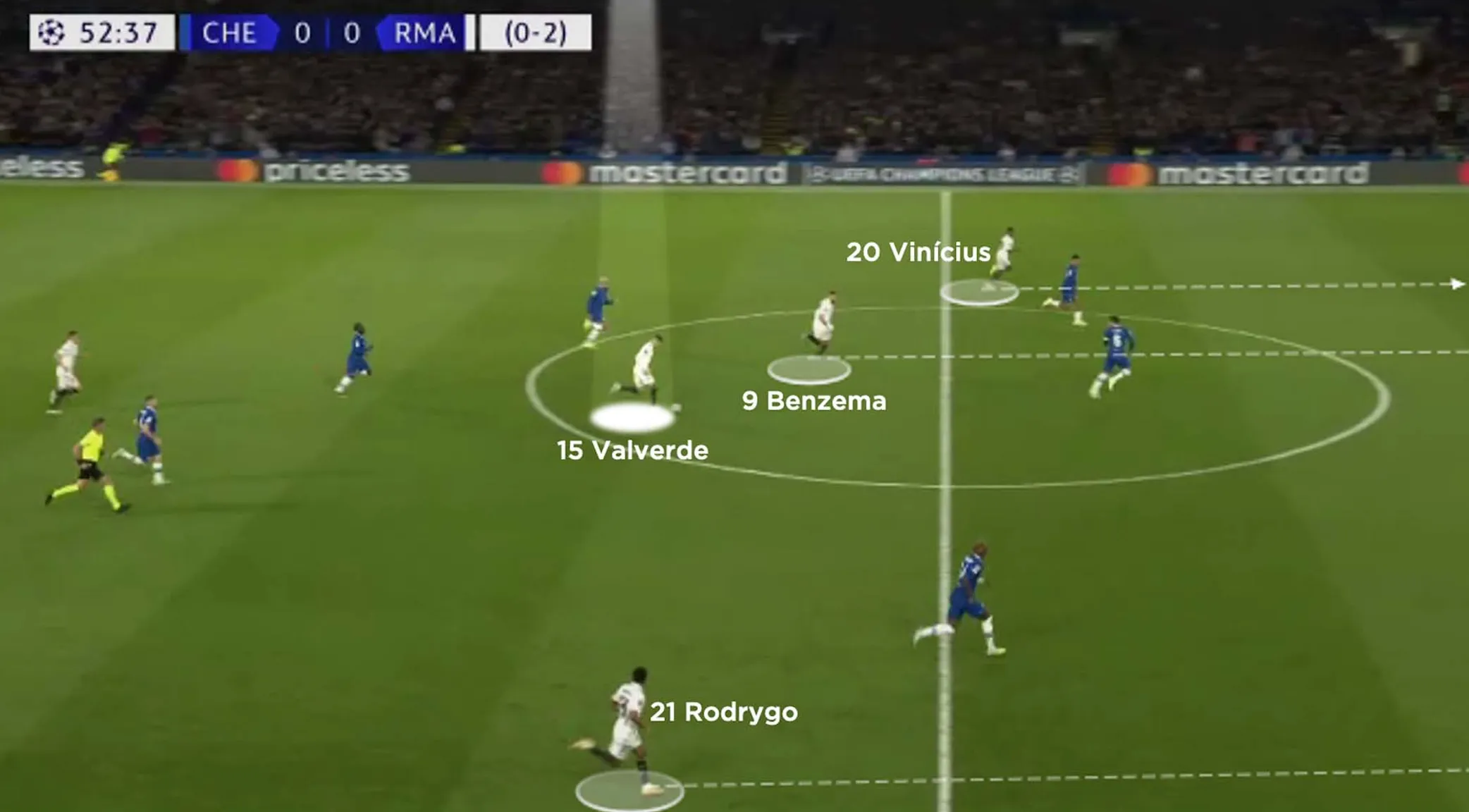 - Vinicius Junior (20) uses his pace to exploit space behind the defense
